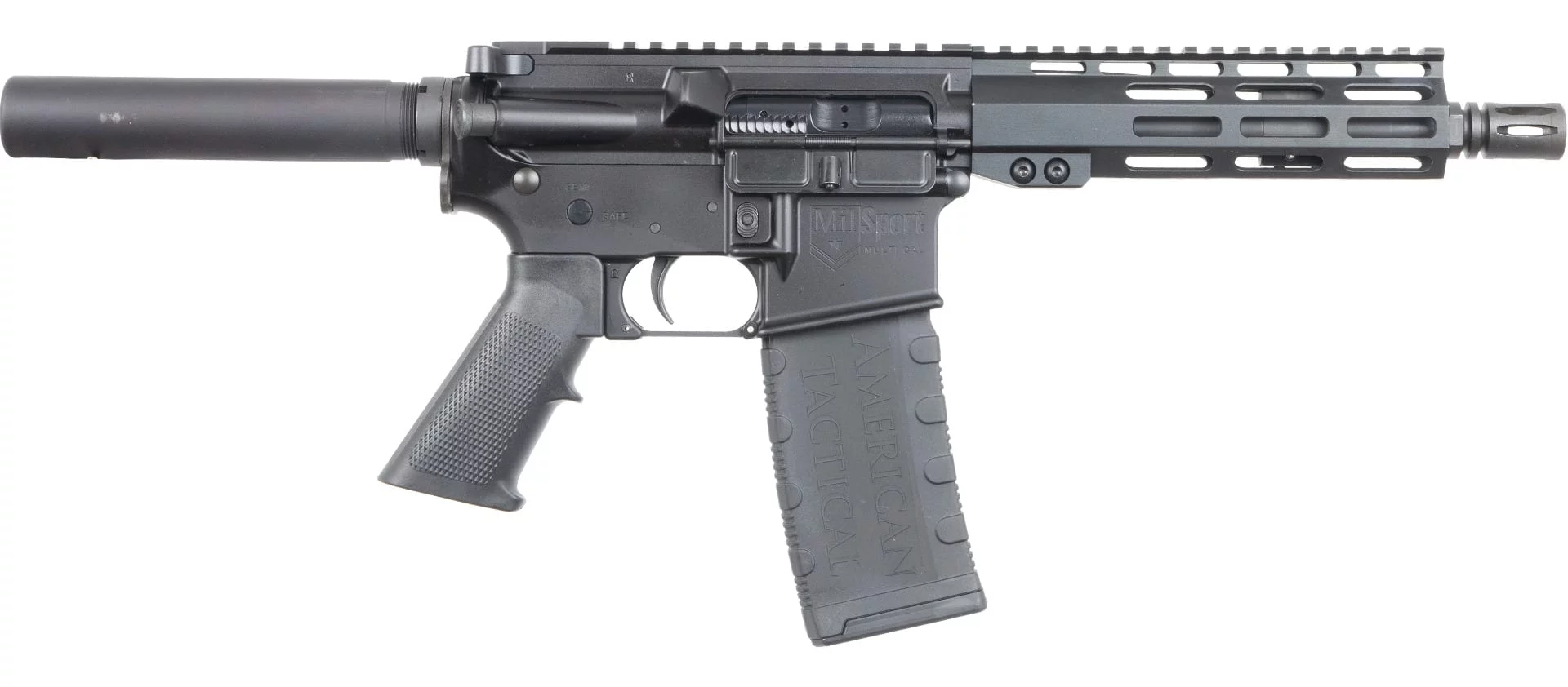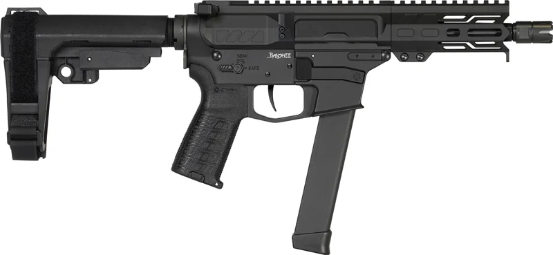 CMMG 57A9A0FAB Banshee MK57 5.7x28mm 20+1 5″ Black Nitride Medium Taper Threaded Barrel, M-LOK Handguard, Black Armor Cerakote Aluminum Receiver w/Picatinny Rail, Black Pistol Tube, CMMG Zeroed Grip