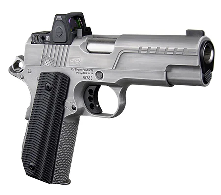 Ed Brown FX2SS FX2 45 ACP 7+1 4.25″ Recessed Crown Barrel, Stainless Steel Engraved American Flag/Serrated Slide, Stainless Steel Frame, Trijicon RMRcc 3.25 MOA Sight