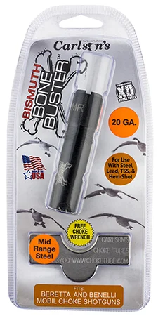 The Bismuth Bone Buster choke tube is designed to produce excellent, dense patterns with all Bismuth ammunition. It is CNC precision machining from 17-4 heat treated stainless steel featuring a longer parallel section (inside the choke) over conventional factory choke tubes. Combine this with extensive testing with various loads and you have the perfect choke to deliver devastating patterns with Bismuth. The Bismuth chokes can be used with all lead and Hevi-Shot loads. Experience the Bone Crushing dense patterns with the Bismuth Choke Tubes. The Extended Range choke tube can be used with all steel shot not larger than #2.