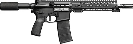 Built on the Mk57 platform, this BANSHEE accepts FN Five-seveN pattern magazines and features an intuitive oversized mag release. Features EML handguards, full length M-LOK slots on both sides and the bottom of the handguard as well as M-LOK between the top picatinny rail sections; Radial Delayed Blowback operating system; full kit of ZEROED parts including: pistol grip, drop-in trigger, 60/90 degree ambi safety, linear compensator 9mm, AR15- ambi charging handle, bolt catch and polymer dust cover. Includes 20rd ProMag magazine.