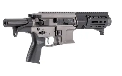 Following the introduction of the MkG many asked for a similar 9mm AR pistol that used the ubiquitous double stack 9mm Glock-pattern magazines and the MkGs platform was born. The MkGs features EML 4″ handguards feature M-LOK slots at 3, 6 & 9 o’clock positions and a full length picatinny top rail for accessories as well as an integrated handstop; Radial Delayed Blowback operating system; full kit of ZEROED parts including: pistol grip, drop-in trigger, 60/90 degree ambi safety, linear compensator 9mm, AR15- ambi charging handle, bolt catch and polymer dust cover. Includes Glock 33rd magazine.