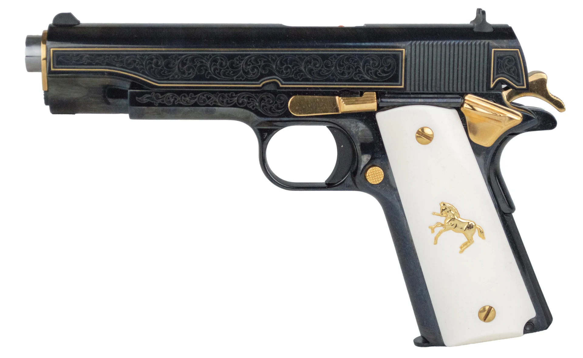 The FN High Power features driftable steel sights; shooting with pinpoint precision, single action trigger; the robust design keeps the signature rake of the dust cover and long arm slide release; ambi-controls for instinctive operation; extended beavertail and raised hammer fit perfectly in hand. The FN High Power takes down instantly for maintenance, deletes the magazine disconnect and ensures that most modern factory loads feed smoothly over the polished ramp of the cold hammer forged barrel. Includes two pairs grips, two magazines and zippered ballistic range bag.