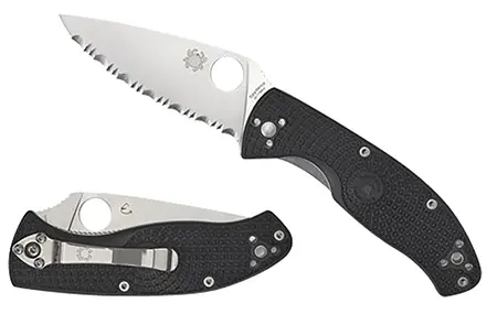 Spyderco C122PSBK Tenacious Lightweight 3.39″ Folding Part Serrated Satin 8Cr13MoV SS Blade/Black Bi-Directional Texturing FRN Handle Includes Pocket Clip