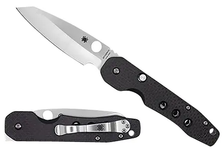 Spyderco C240CFP Smock 3.39″ Folding Plain Stonewashed CPM S30V SS Blade/Black Textured Carbon Fiber/G10 Handle
