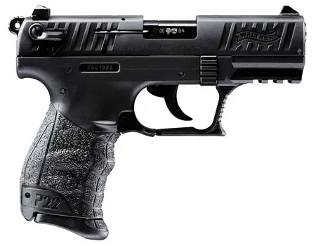 Walther Arms 5120333 P22 *CA Compliant 22 LR 10+1 3.42″ Matte Black Tenifer Serrated/Steel Slide, Black Polymer Frame w/Picatinny Rail, Black Interchangeable Backstrap Grips