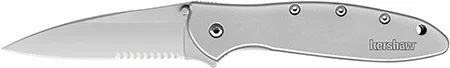 Kershaw 1660ST Leek 3″ Folding Drop Point Part Serrated Bead Blasted 14C28N Steel Blade Bead Blasted 410 Stainless Steel Handle Includes Pocket Clip