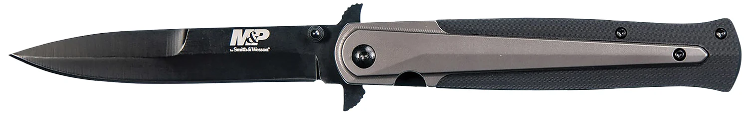 Smith & Wesson Knives 1085899 M&P Tactical Stiletto 4″ Folding Spear Point Plain Stainless Steel Blade FRN Black/FDE Includes Pocket Clip